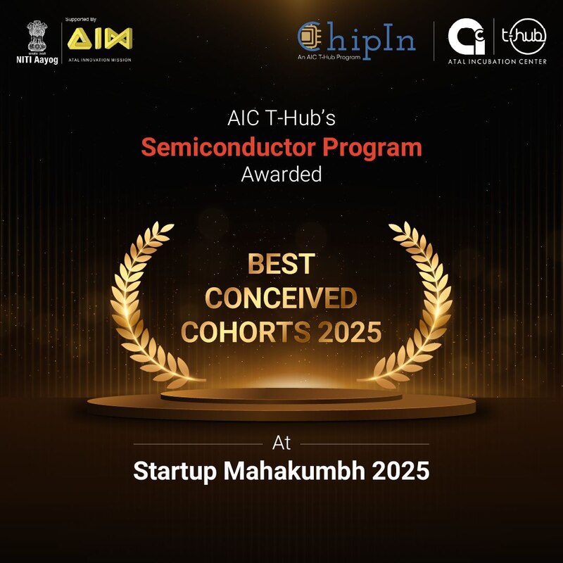 T-Hub, a global leader in startup incubation, in collaboration with Atal Innovation Mission (AIM), has earned the prestigious “Best Conceived Cohort 2025” award for its AIC T-Hub Semiconductor Program at Startup Mahakumbh 2025, hosted at Bharat Mandapam, New Delhi. This honor highlights the program’s strategic vision, strong incubation framework, and its pivotal role in advancing India’s semiconductor ecosystem.