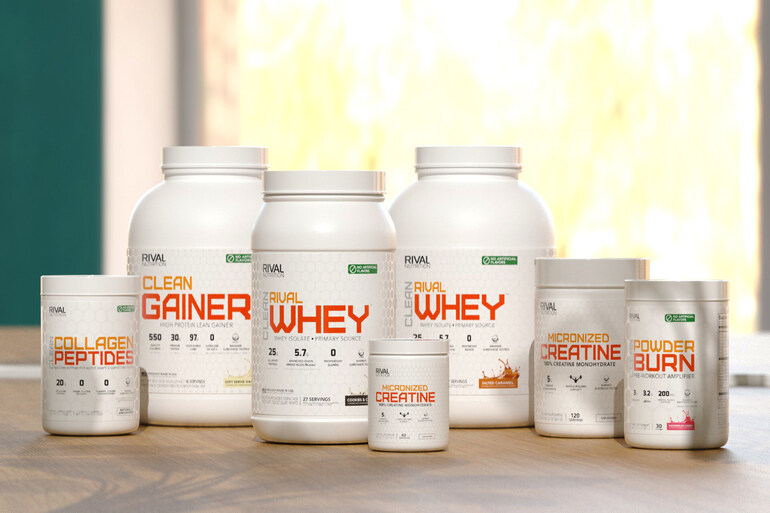 Clean Rival Whey and Naturally Flavored Clean Gainer are available now at rivalnutrition.com and Amazon. Clean Powder Burn, Micronized Creatine, and Clean Collagen Peptides will be available later this summer.